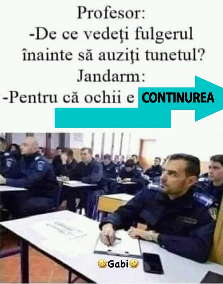 Bancul zilei. Ce a răspuns un jandarm când a fost întrebat ”De ce vedeți fulgerul înainte să auziți tunetul?”.