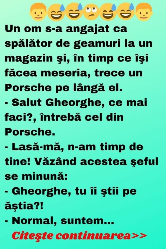 – Salut Gheorghe, ce mai faci?, întrebă cel din Porsche.